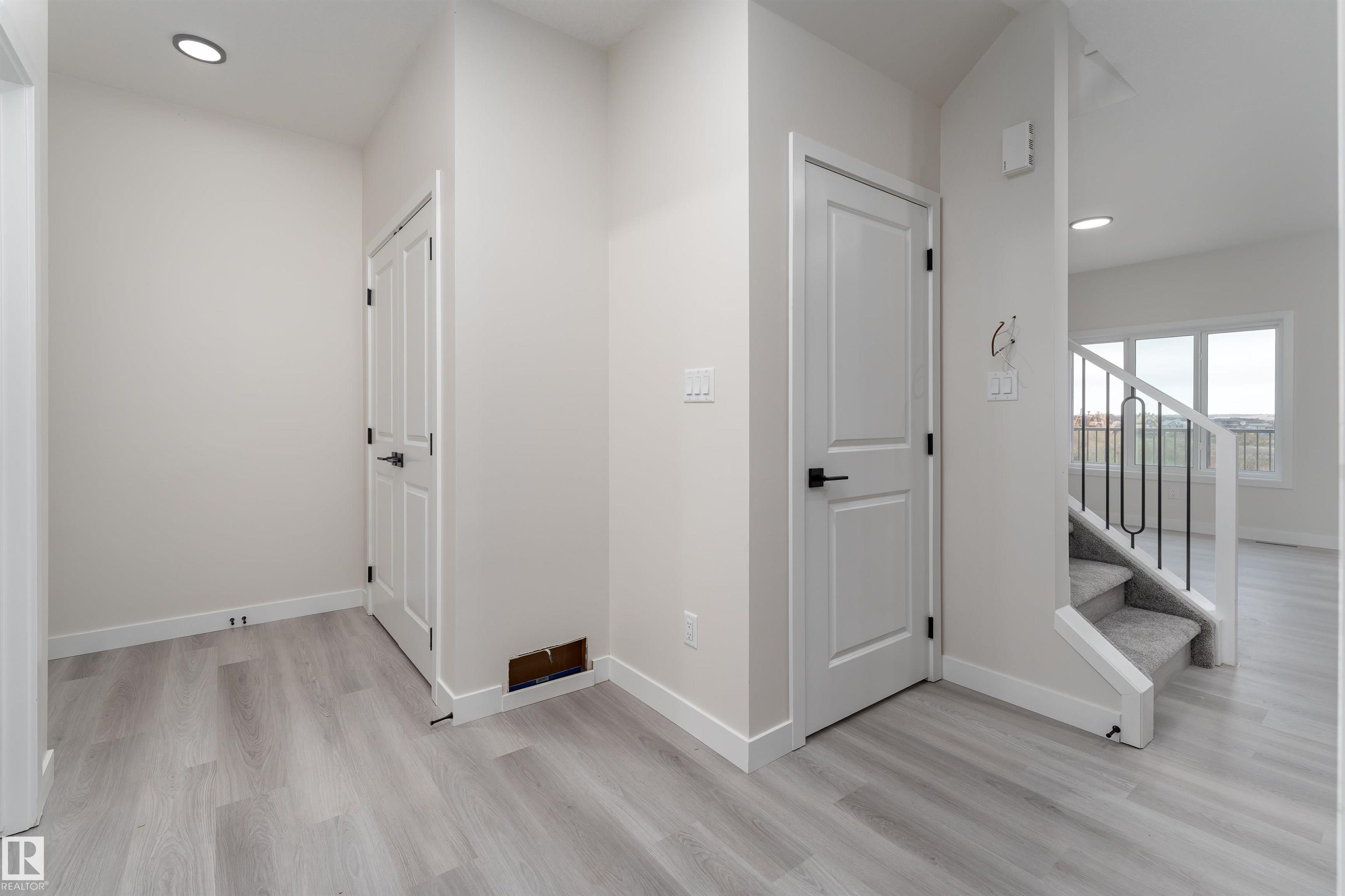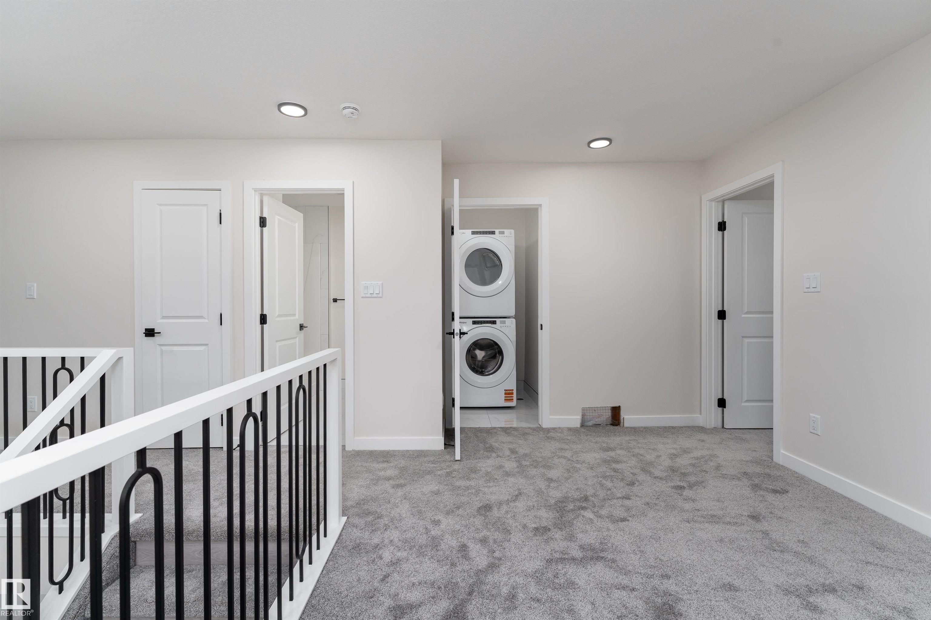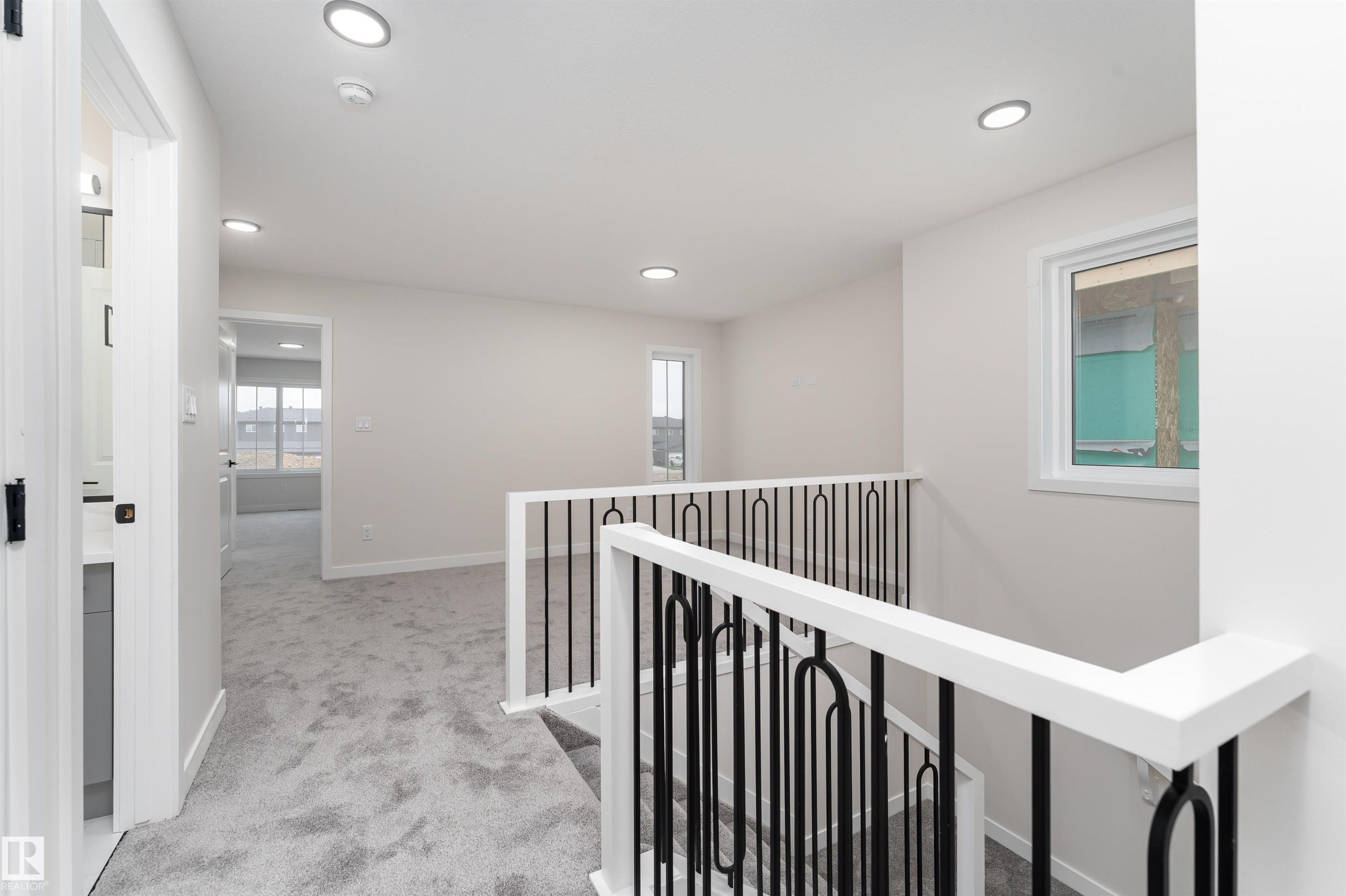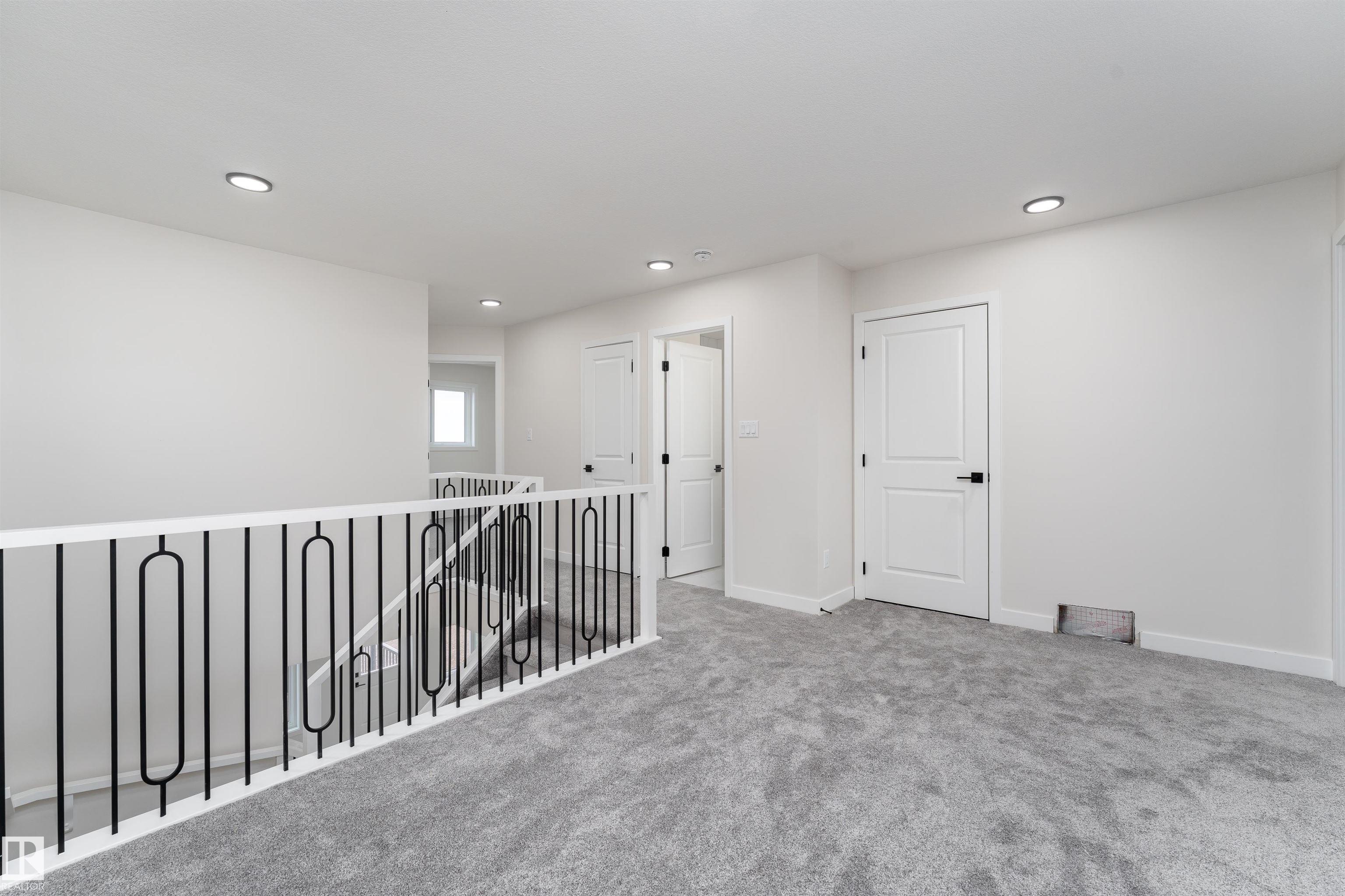 Prepare to be impressed by this brand new 1600 sq ft duplex, showcasing a modern, clean look throughout. The main floor offers a bright and spacious open layout with a warm fireplace in the living room. The modern kitchen includes stainless steel appliances and plenty of counter space, flowing into a large dining area with easy access to the deck. Upstairs, a spacious bonus room separates the three well sized bedrooms, including a beautiful primary suite with a walk in closet and a 4 piece ensuite. Another 4 piece bathroom adds everyday convenience. The full unfinished basement and double attached garage offer excellent storage, future development potential, and the opportunity to create a legal basement suite with its separate entrance. Outside, enjoy a large deck and a generous backyard perfect for entertaining, relaxing, or enjoying warm summer days. With brand new appliances and the excitement of being the first to live here, this home is truly an exceptional find. Some photos are virtually staged.