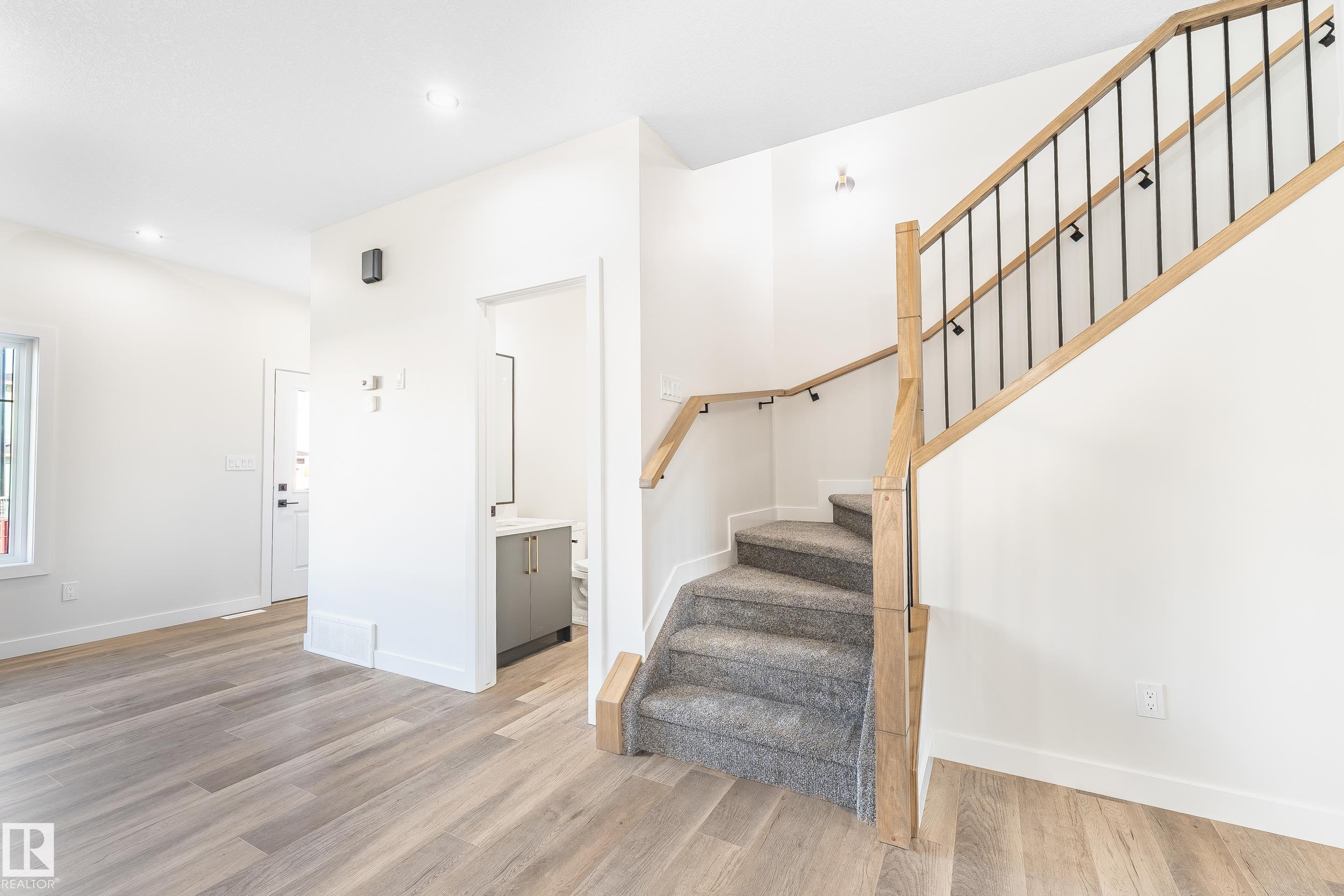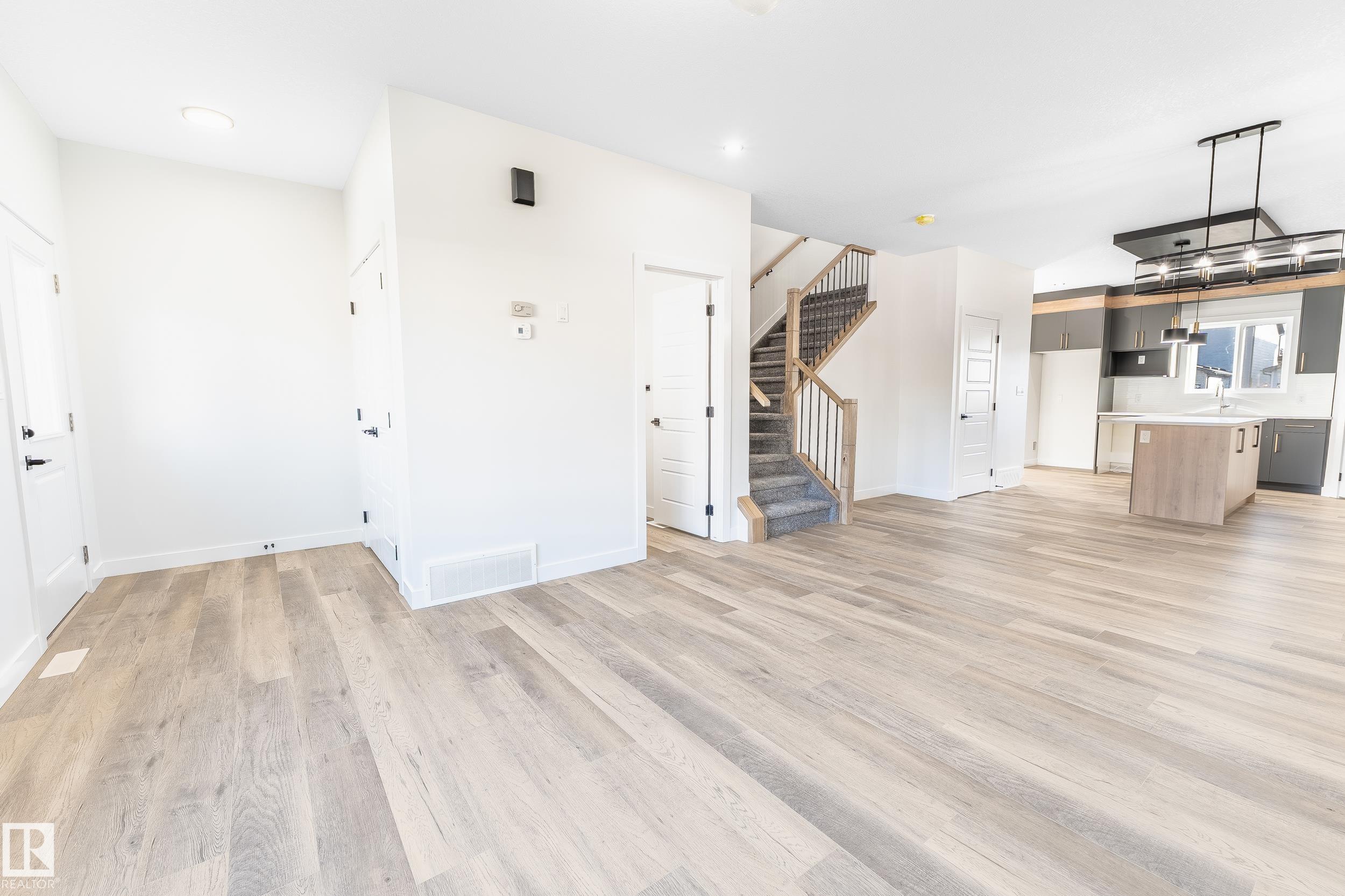 Welcome to this stunning 1,579 sqft Single-family home featuring 3 bedrooms and 2.5 baths offers both style and functionality. Enjoy the convenience of a SIDE ENTRANCE and parking pad, all while being steps from schools and a beautiful park. 9' CEILINGS creating an airy, spacious feel, 3 cm quartz counter tops through out house and DUAL-TONE cabinets for a sleek, sophisticated kitchen.Luxury vinyl plank flooring paired with cozy carpeted bedrooms,MDF shelving for organized storage and striking FEATURE WALLS for added character. Upgraded light fixtures that bring a warm, inviting ambiance.A BASEMENT with 2 WINDOWS, ready for your future development.This home truly combines location, luxury, and lifestyle!