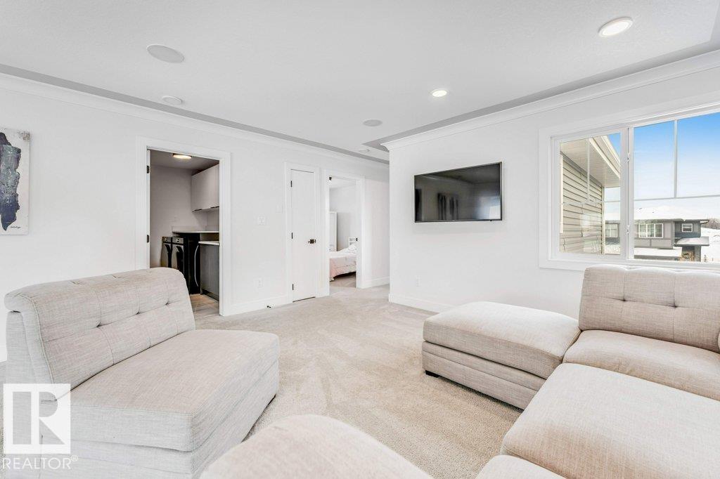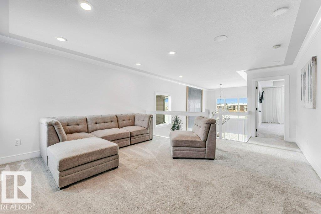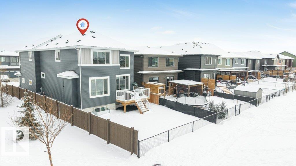 BACKING ONTO PRESCOTT SCHOOL YARD WITH NO REAR NEIGHBOURS! CORNER LOT & 2 MINS walk to LARGE POND, This beautifully upgraded home features 4 bedrooms, 2.5 bathrooms,a main floor DEN and a SIDE ENTRANCE offering exceptional space and functionality for modern family living. The main floor showcases an impressive OPEN TO ABOVE concept with a bright living area highlighted by a tiled fireplace and elegant glass railing, along with a convenient half bathroom.The extended kitchen is thoughtfully designed with quartz countertops, built-in appliances, under-cabinet lighting,and built in SPEAKERS creating a perfect space for both everyday living and entertainment.Upstairs, the spacious primary suite offers a walk-in closet and a luxurious 5-piece ensuite, complemented by three additional bedrooms, a bonus room, and a full bathroom and a laundry with SINK and lots of cabinets. 4 windows in the basement provides endless potential for future development.This home truly combines location,luxury,comfort and lifestyle!