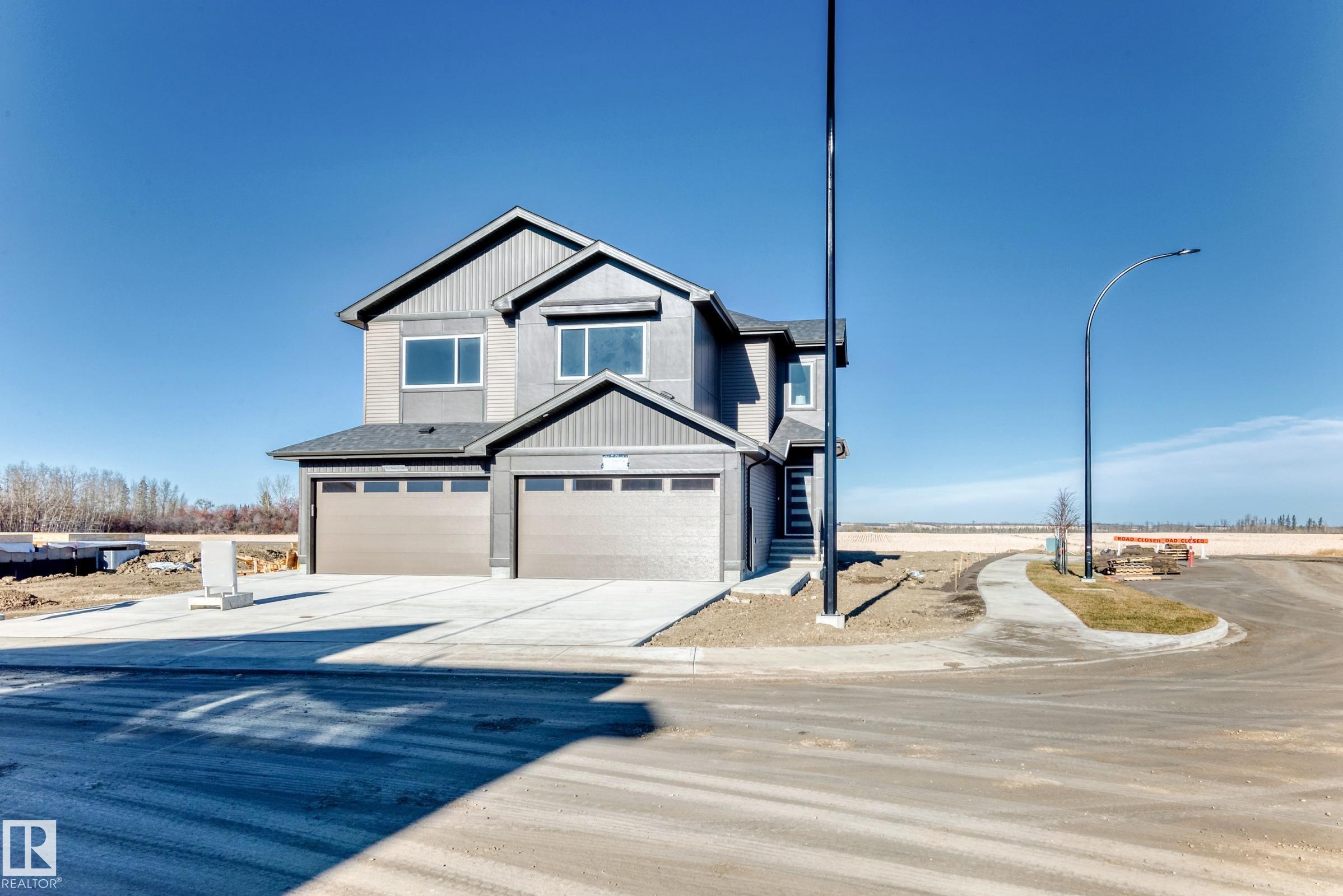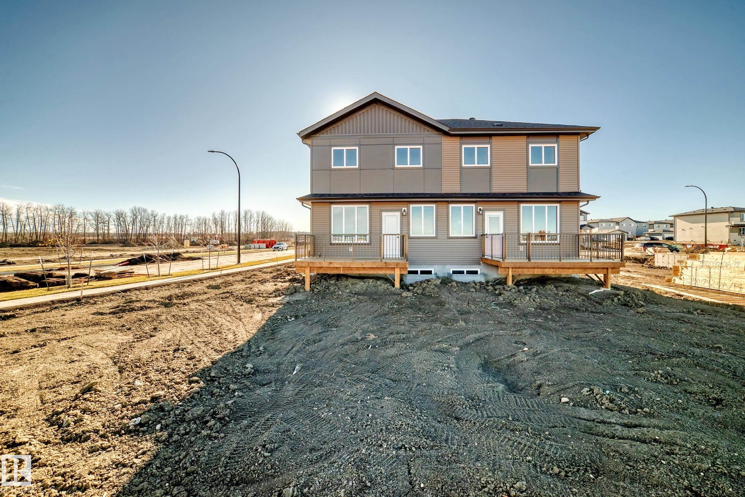 Don't miss your chance to own the Lyonsdale Homes show suite in Prescott. Situated on a massive corner lot backing onto a walkway and green space, this half duplex offers over 1,700 sq ft of thoughtfully designed living space. The main floor features a bright open-concept layout with an L-shaped kitchen, walk-through pantry, spacious living and dining areas, and large windows that fill the home with natural light. Step outside to the completed deck overlooking the expansive yard and green space. Upstairs, you'll find a private primary suite, a bonus room, two additional bedrooms, a full bathroom, and convenient upper-floor laundry. A separate side entrance provides excellent potential for a future legal suite or rental opportunity. Located in a growing, family-friendly community close to parks, trails, and amenities.