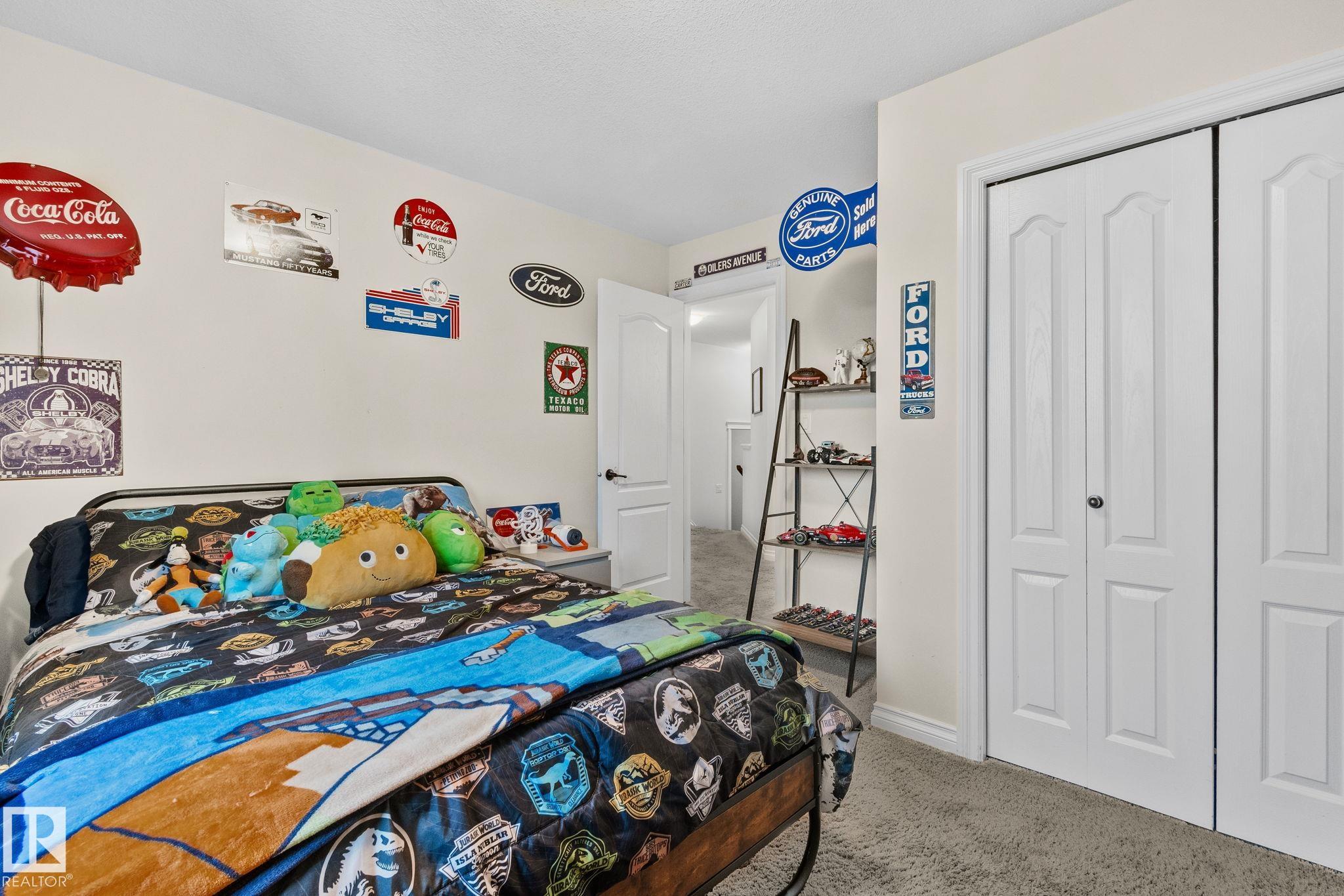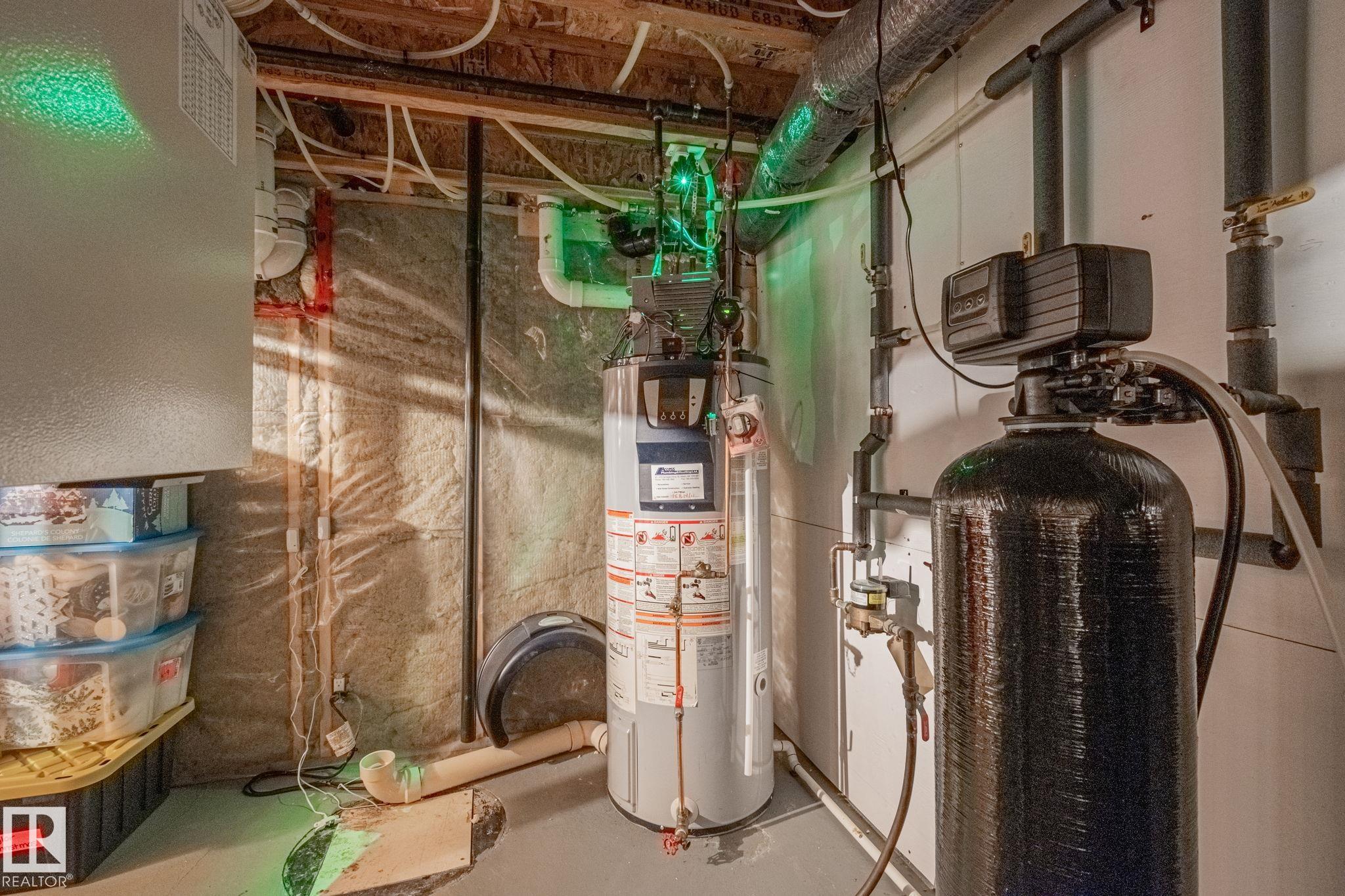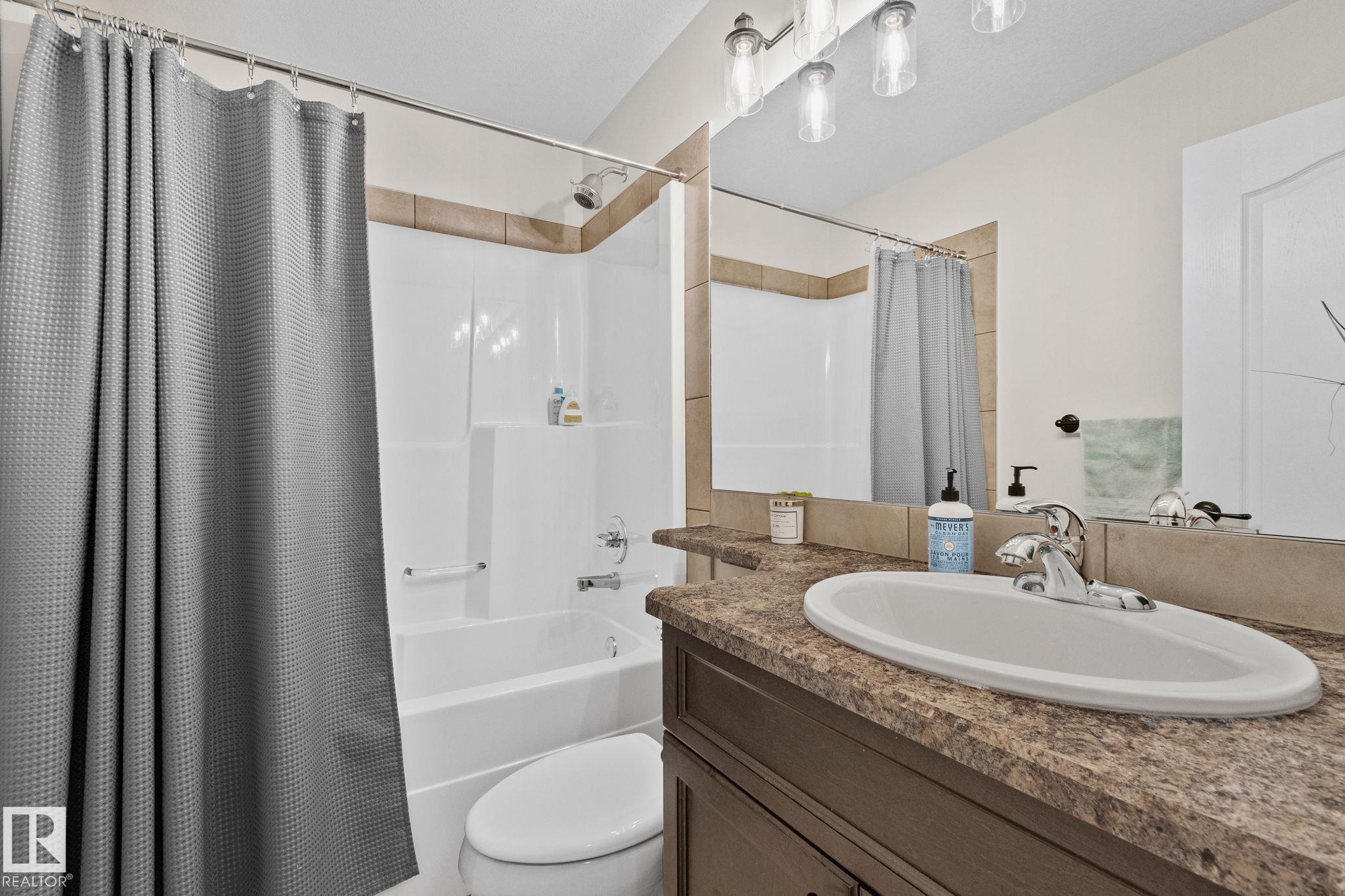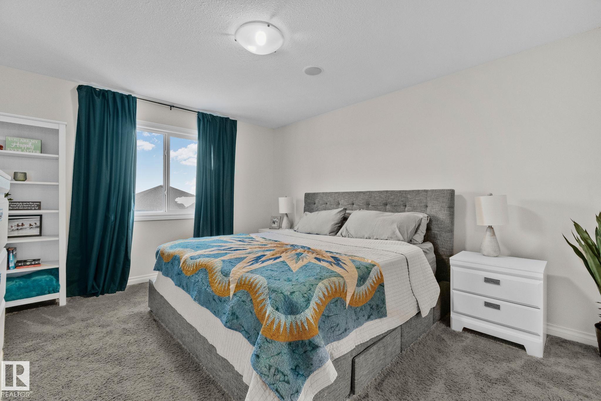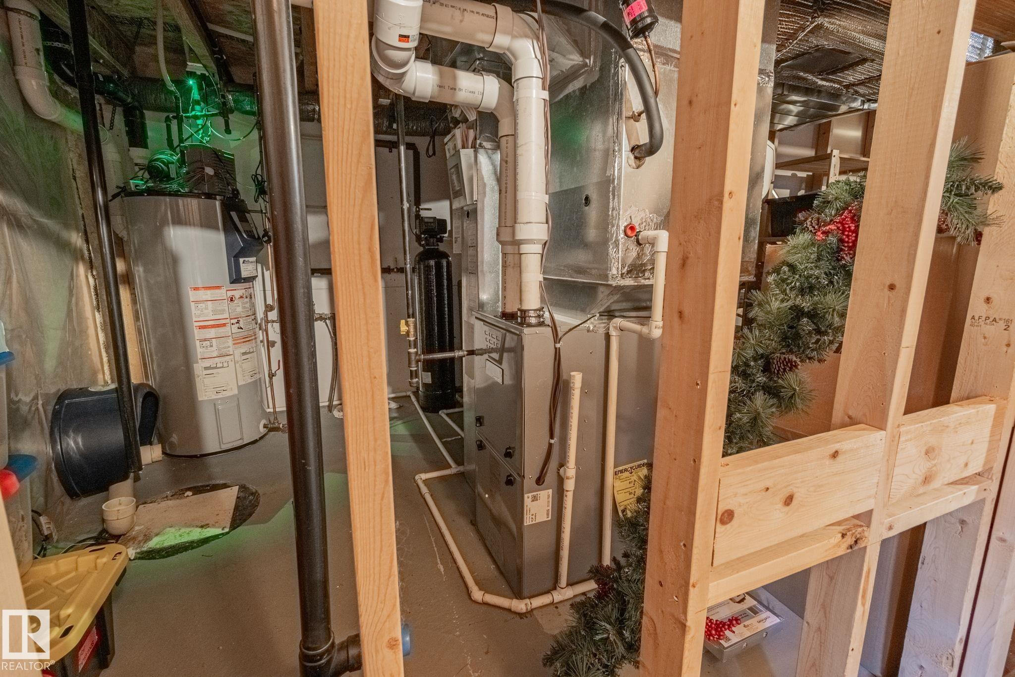 This home is Beautiful. Curb Appeal 10/10 - Giant Covered front entrance, dark rundle stone...and the Backyard is great with mature trees, play structure, beautiful deck with privacy screen, gas BBQ connection! It's perfect! Inside, over 2000 sq ft 2 storey with a very OPEN and unique layout. MASSIVE Light filled bonus room with TALL vaulted ceilings and beautiful architectural cuts. True laundry room just off the bonus room. 3 beds up, 2 bathrooms, great Primary room with a soaker tub and shower ensuite. A/C!! Main Floor is wide open - LARGE front entrance, open view of the living room and that custom fireplace built in. Newer vinyl plank on main and bonus room, Granite countertops, BEAUTIFUL kitchen has Maple Cabinets, Large Island, Corner Pantry. Take 3 Steps down into your 1/2 Bath, Bench for storage and Double Garage entrance. Basement has been fully FRAMED for bedroom, bathroom, storage and living area. WALK to JUBILEE PARK, Schools, Restaurants, Quick Edmonton Access!! 10/10!!