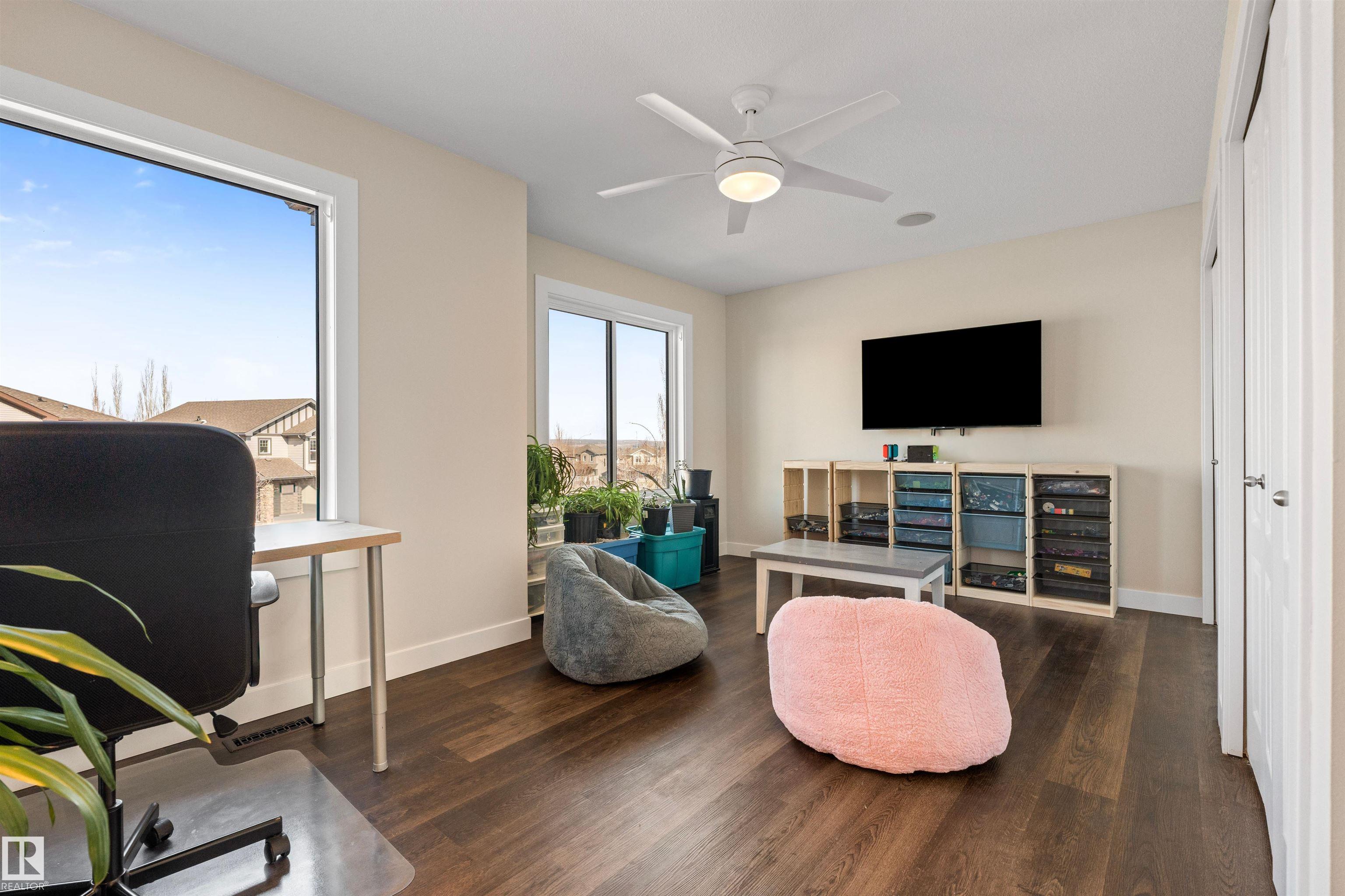 Grace & presence define this striking two-storey residence, perfectly placed steps from Jubilee Park. Designed for elevated family living, 2,731 sqft unfolds in a bright, air conditioned open plan where sunlight pours through expansive windows, illuminating rich hardwood floors. The kitchen is stylish & functional, featuring granite counters, island with bar seating, & walk-in pantry keeping everything within reach, while an inviting fireplace anchors the living space. Upstairs, a sprawling bonus room offers separation and flexibility, while two well sized bedrooms, full bath, and a serene primary suite with walk-in closet & spa-inspired ensuite complete the level. The finished basement adds even more versatility with a large rec room, fourth bedroom, and full bath. The remarkable backyard retreat is fully fenced & beautifully scaled, with a spacious deck & fire pit area for evenings under the stars. Wired for CAT5 & enhanced with a solar panel package for the tech savvy, plus a heated double car garage.