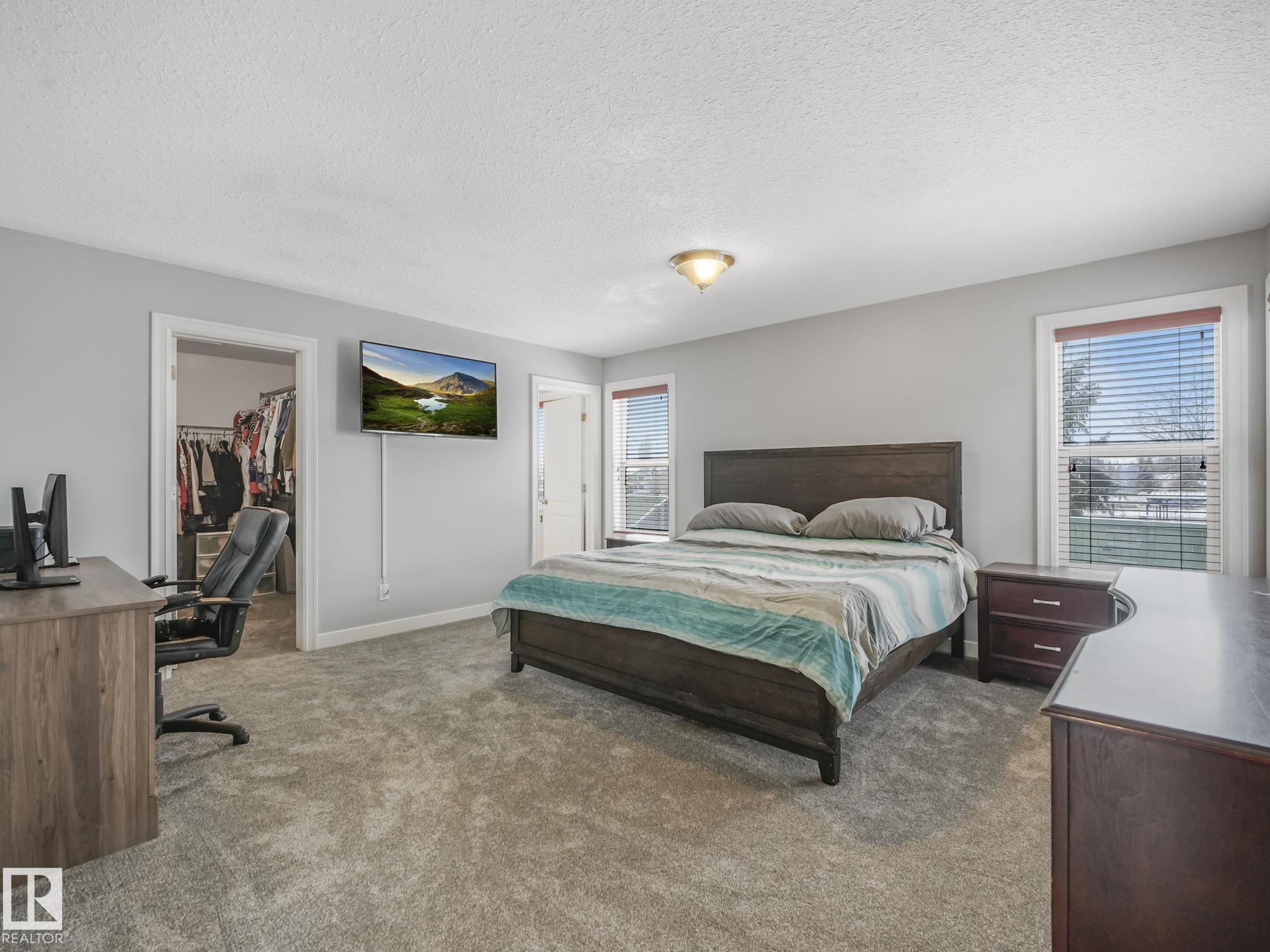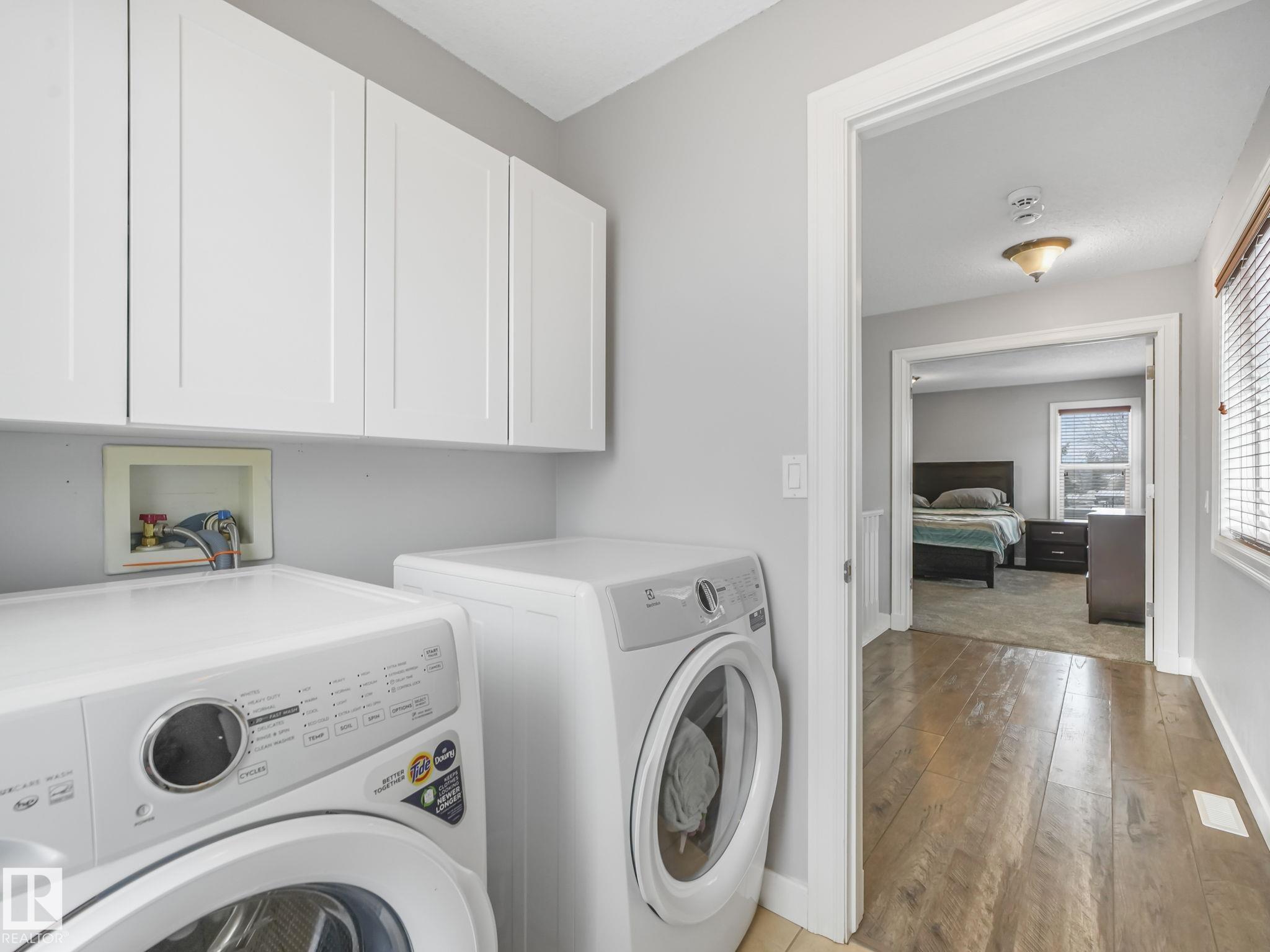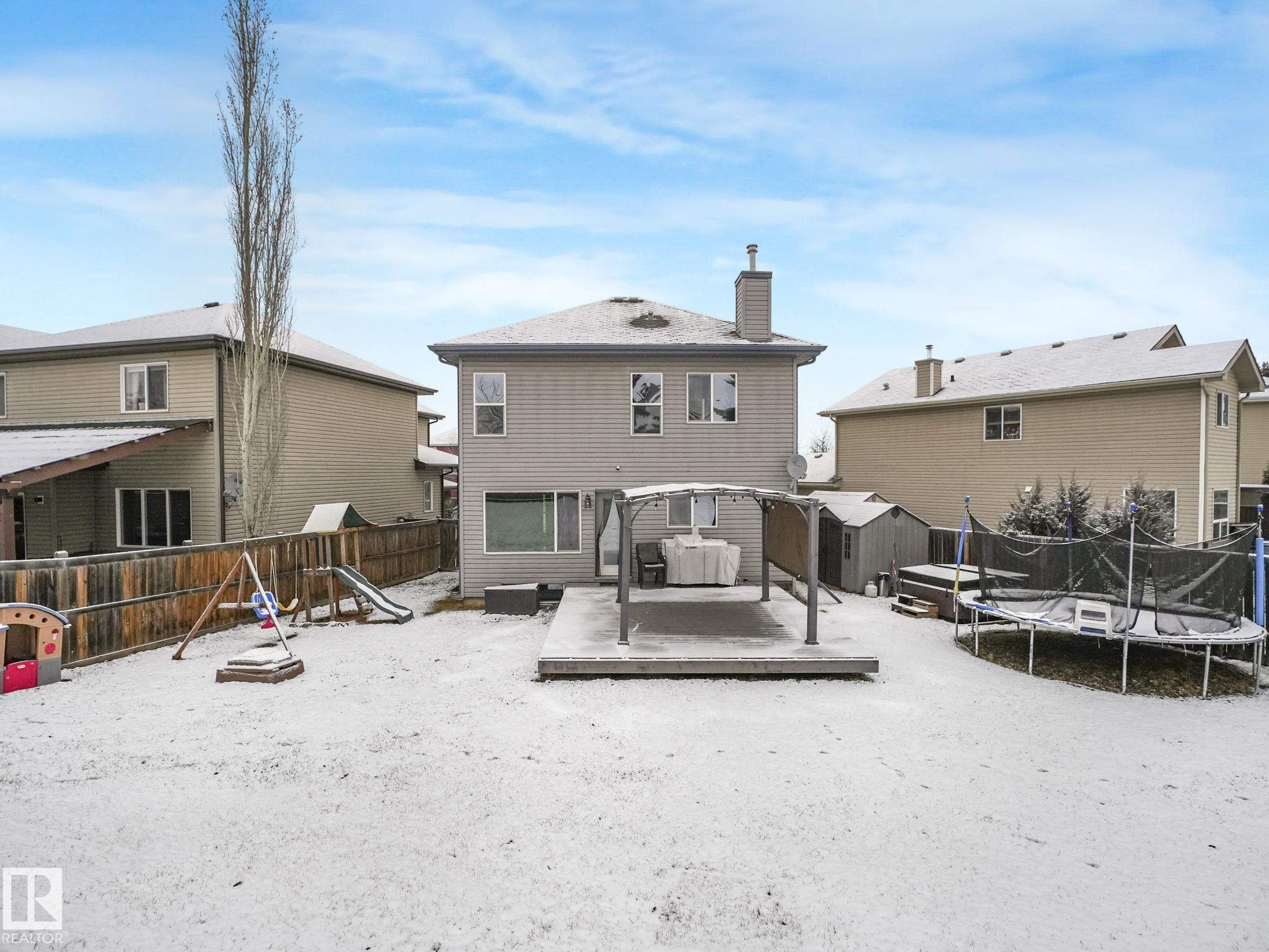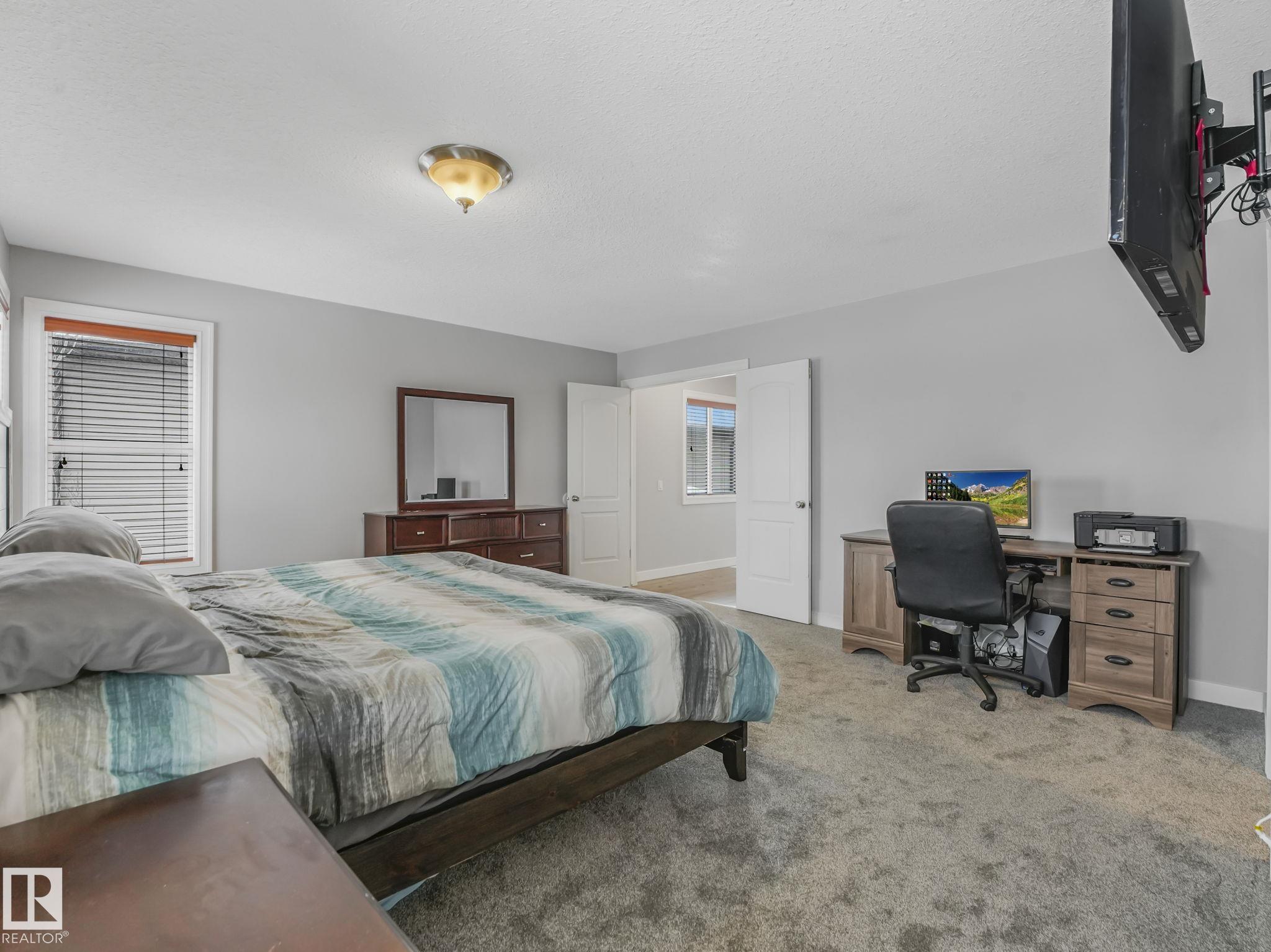 MOVE IN READY...this WELL MAINTAINED home located in Spruce Village is the PERFECT FAMILY HOME! The main floor offers a large entry complete with a space for bench seating and a built-in desk (ideal for a homework station). The living room (with gas fireplace) and spacious kitchen are open concept making this perfect for family time or entertaining. Organization is easy to achieve in the kitchen with the built-in wall pantry, lots of cupboards and center island. A 2 piece powder room and garage access complete this main floor. The upper floor presents a primary suite (with ample space for large bedroom furniture), a walk in closet and a 4 piece ensuite. Also offered on the upper floor are 2 more spacious bedrooms, a 4 piece bathroom and a bright laundry room. The f/f basement offers a family room/games area, 2 piece bath and storage areas. Features include NEW PAINT, NEW CARPET throughout and AC! The massive pie shaped south facing yard is ready to enjoy with the warmer days ahead!!!