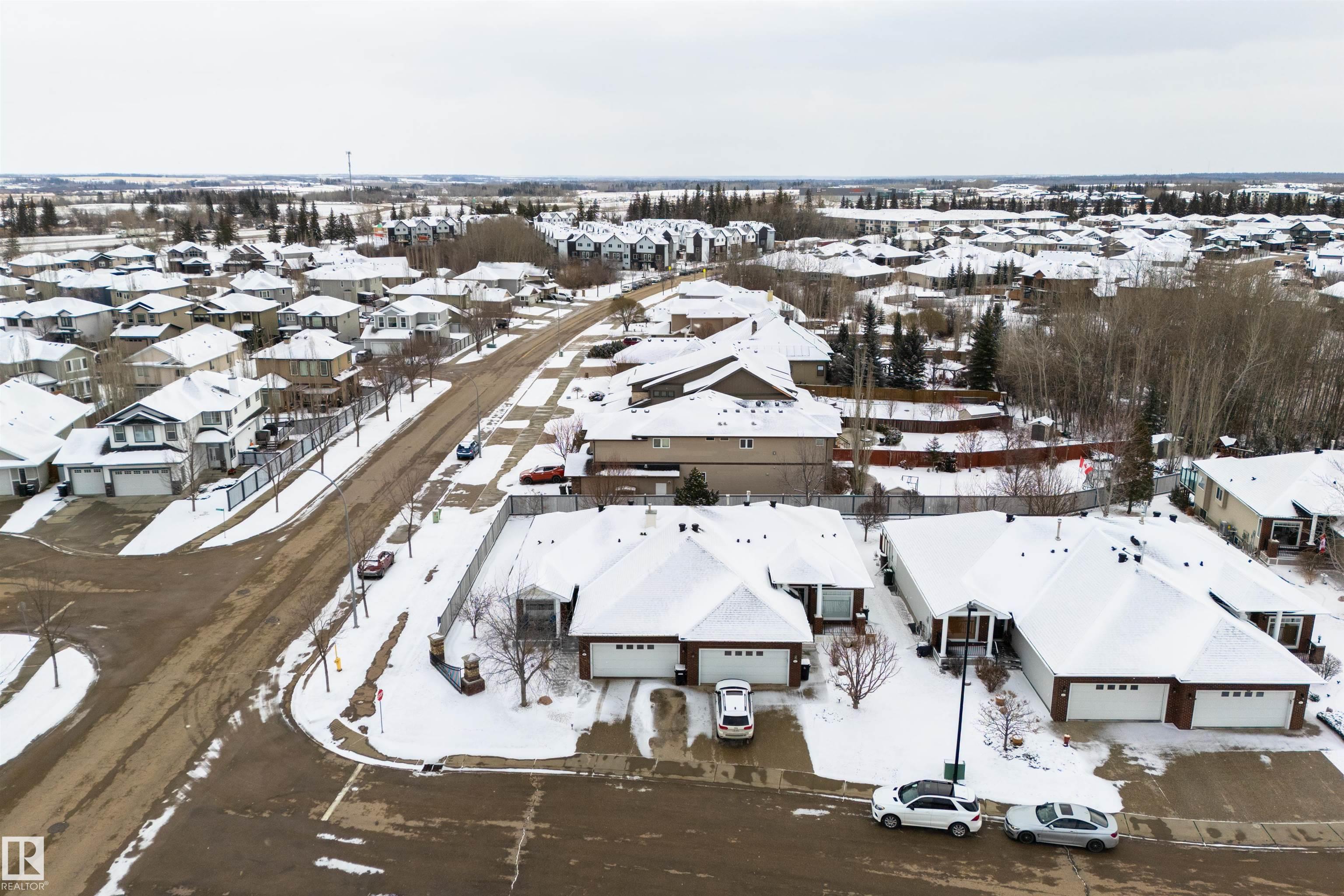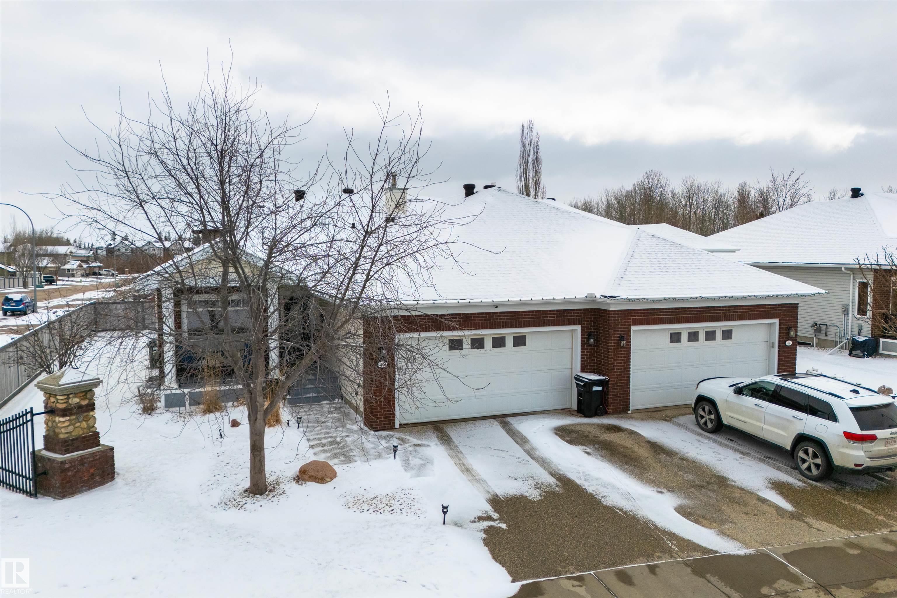 Downsize without compromise in Fairway 8 - one of Spruce Grove's most established 55+ adult-living communities, where seasonal outdoor maintenance (lawn & snow) is covered by the HOA. This home has been thoughtfully updated throughout, with a full main floor renovation completed in 2021 and the basement done in Sept. 2025. The main floor is anchored by a chef's kitchen with granite counters, stainless appliances, corner pantry, and a separate dinette (with a garden door leading out to the deck), a large living room with gas fireplace, dedicated office/den, main-floor laundry, 3pc bath, and a king-sized owner's suite with a walk-in closet and 5pc ensuite. Downstairs adds exceptional value: in-floor heat, a wet bar, large rec room, two additional bedrooms, and a 3pc bath. Complete with new shingles (2021), underground sprinklers, and a double-attached garage, this home offers low-maintenance living in one of Spruce Grove's most desirable adult communities.