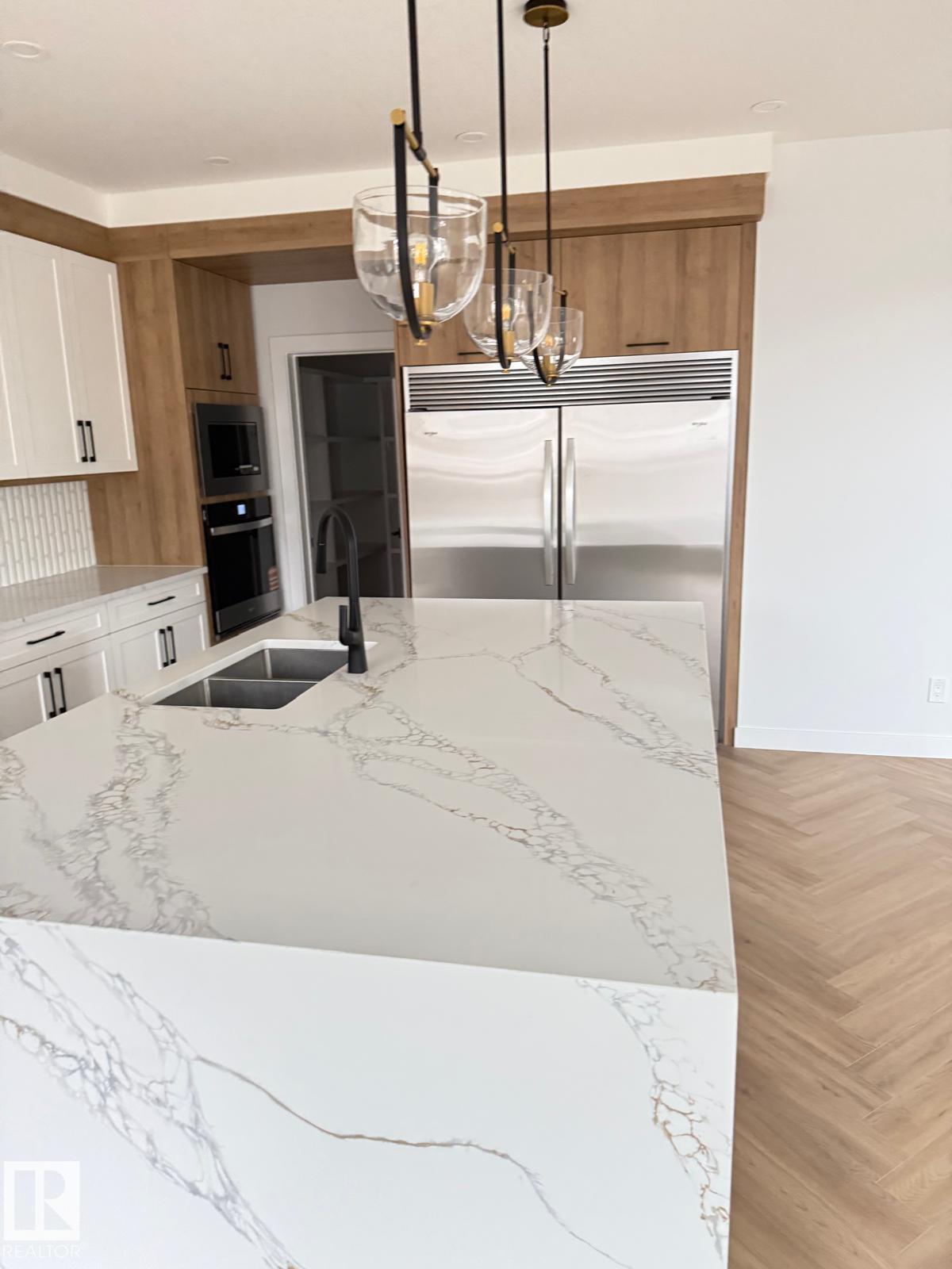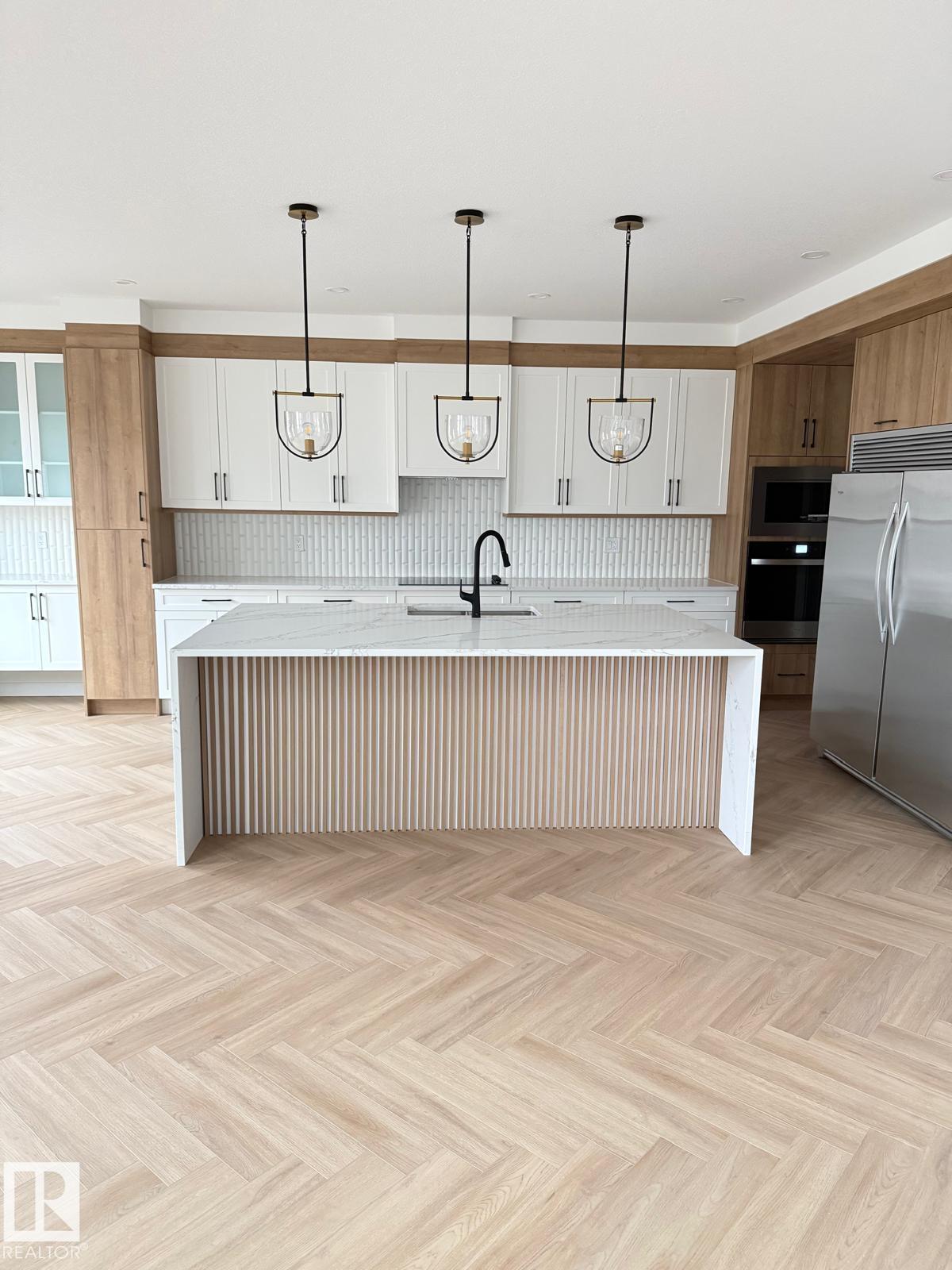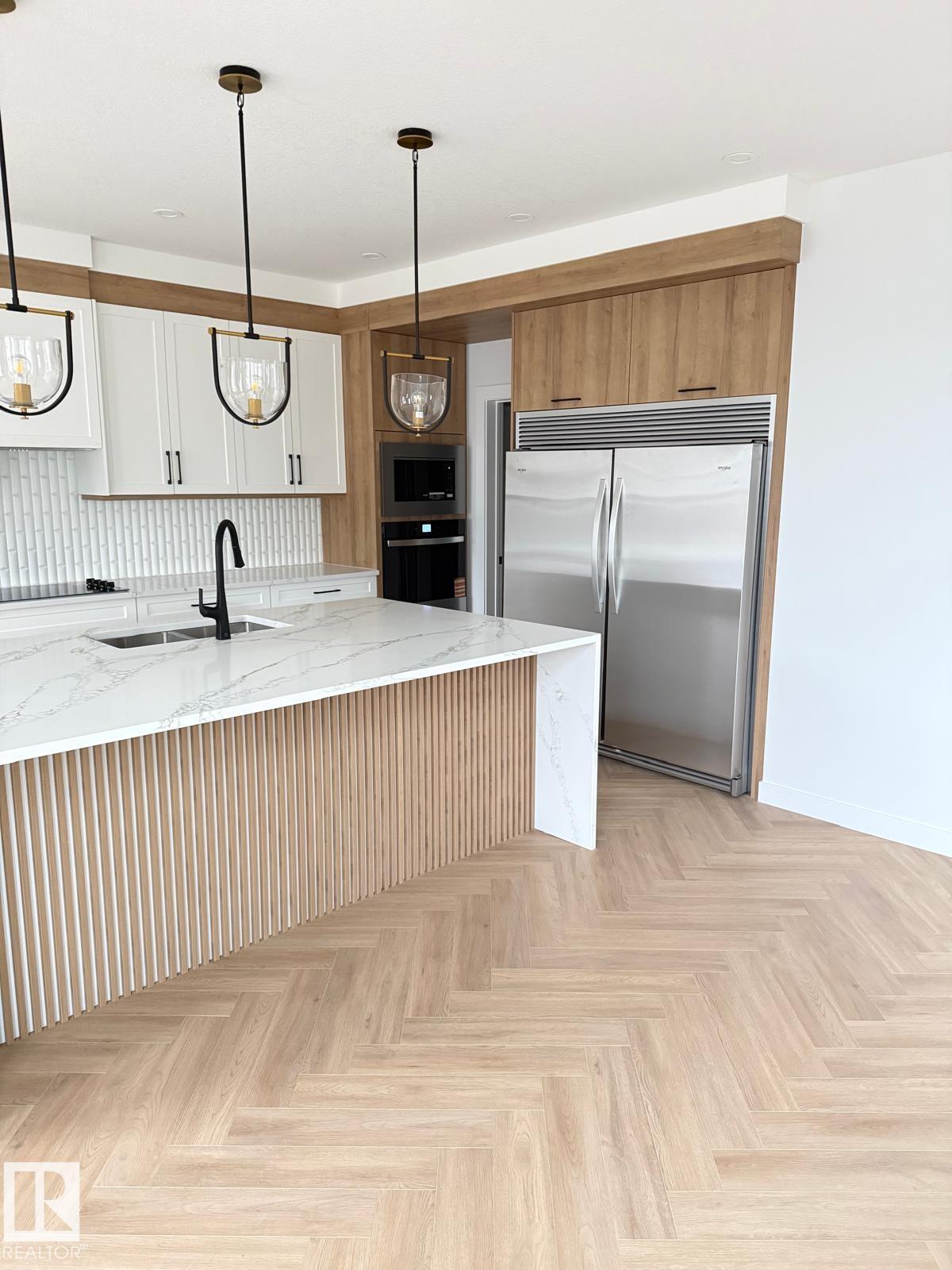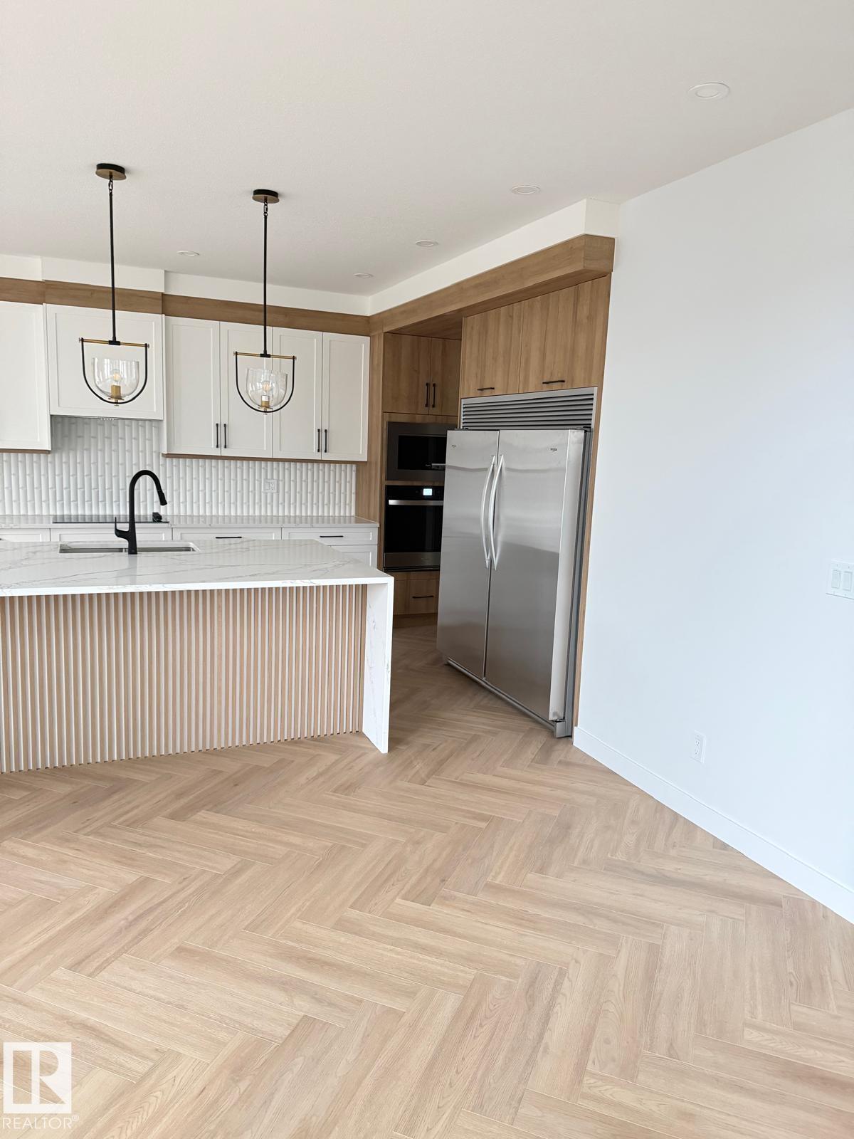 Welcome to the prestigious community of Stoneshire! This beautifully designed 2,638 sq. ft. home is filled with natural light and sits on an oversized lot, offering exceptional space and comfort for family living. A triple-car garage, custom cabinetry, and two stunning open-to-below features highlight the home's quality craftsmanship. Just off the entry, a versatile flex/den space provides the perfect setting for a home office or study. The elegant primary suite features a spa-inspired ensuite with refined finishes, complemented by three additional generously sized bedrooms and 2.5 bathrooms. A separate side entrance to the basement offers excellent future development potential. Enjoy modern touches throughout, including two electric fireplaces, designer lighting, accent walls, and sleek contemporary finishes. The chef's kitchen is equipped with ceiling-height cabinetry, quartz countertops, and a walk-in pantry with MDF shelving.