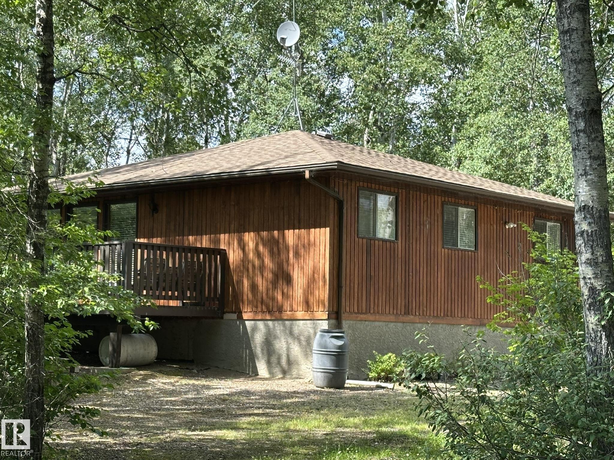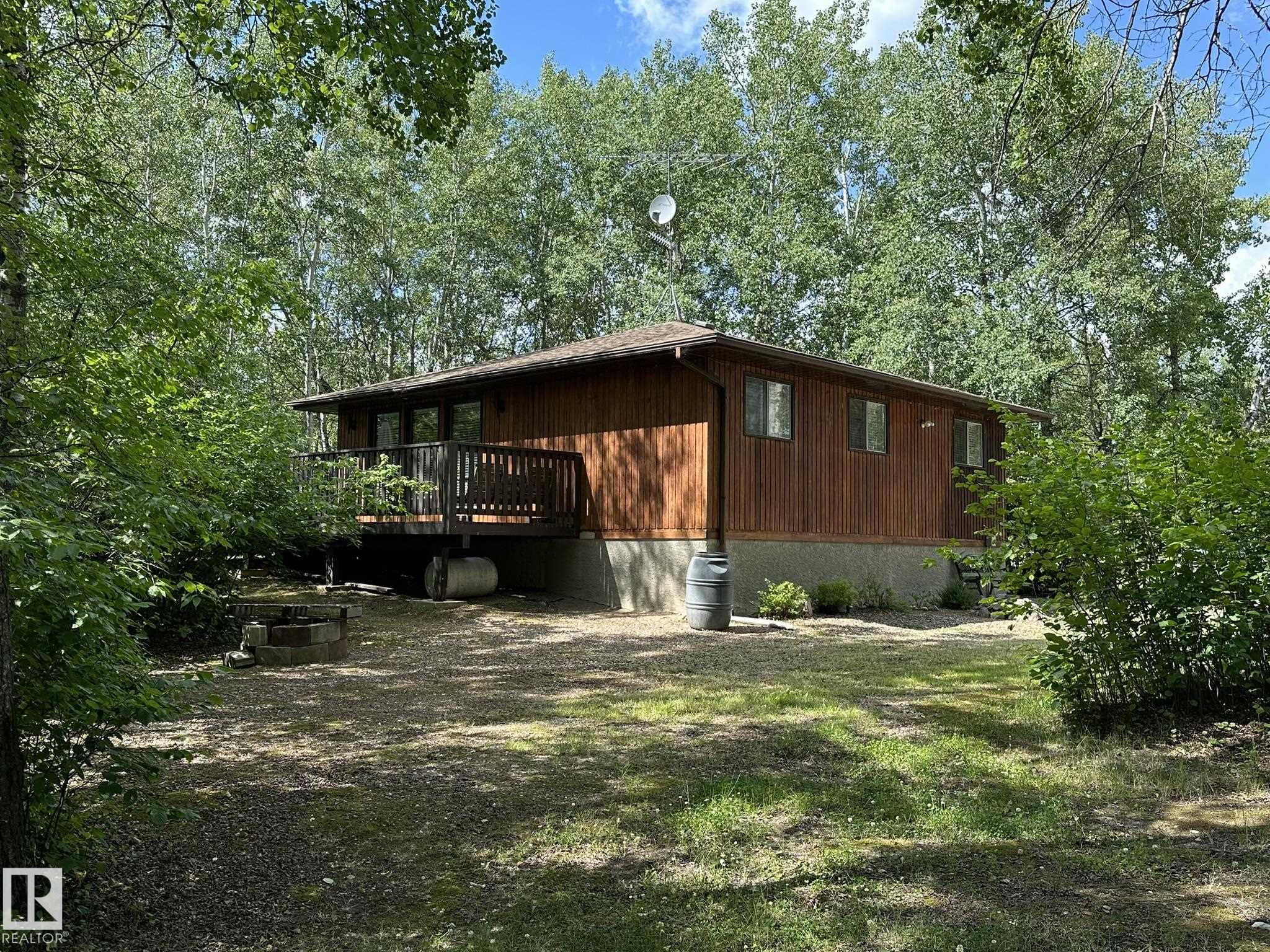 Gorgeous all-season home at popular Bonnie Lake Resort just over an hour from Edmonton. You'll be impressed by this scenic 3/4 acre property, it is so inviting and bright, and boast a wraparound deck on east and south sides where you'll get to relax and enjoy the tranquility of this well-treed lot. Inside, you will want to spend time in the lovely open concept area (well appointed kitchen, dining room with direct access to the deck, large living room with tons of windows). The main floor also features 3 bedrooms and a full bath. A long driveway guides you to this huge lot, equipped with a double detached garage, a storage shed and a firepit. Kids and adults alike will love the lot's numerous developed trails, which help explore this land. All this only a short walk to the lake, beach and boat launch. Bonnie Lake Resort is a superb area, safe for kids and families to enjoy the seasons' beauty and build everlasting memories along bike friendly streets, playgrounds and golf course, did I mention the lake?