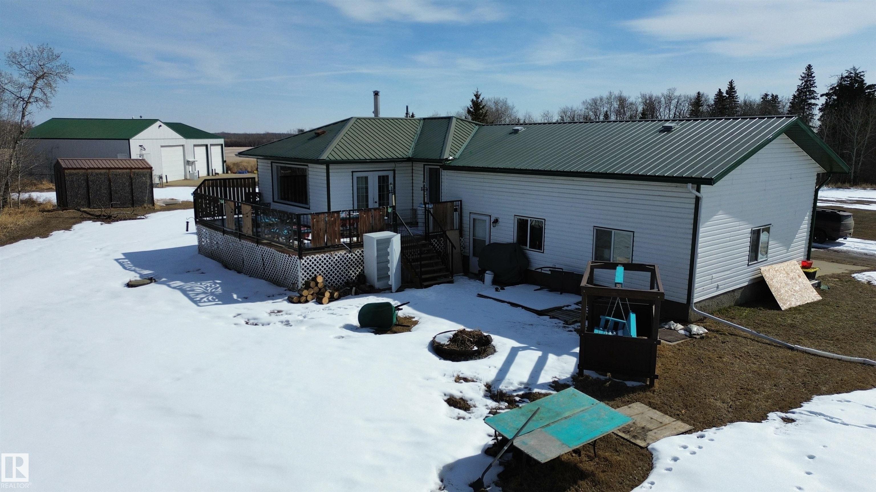 Lots to offer here. The main house 2 sections- both currently rented. Upstairs 3 bedrooms and full bath, basement has 1 bedroom and full bath. The Attached Garage is 30X24. Infloor heat, large deck, great peaceful setting. An additional 16x76 foot trailer with a 10x10 addition is also on site. Metal roof, deck and in really good shape. Nice front bedroom with large windows and a great view. All Appliances come with. The Shop has 3 bays- single Bay 20X40, Double Bay 40x40(infloor heat and hot/cold taps) office space as well in the double bay and the third bay has a large cooler and freezer. Total of 60 - 70 acres of farmland are also available. Everything is currently rented.